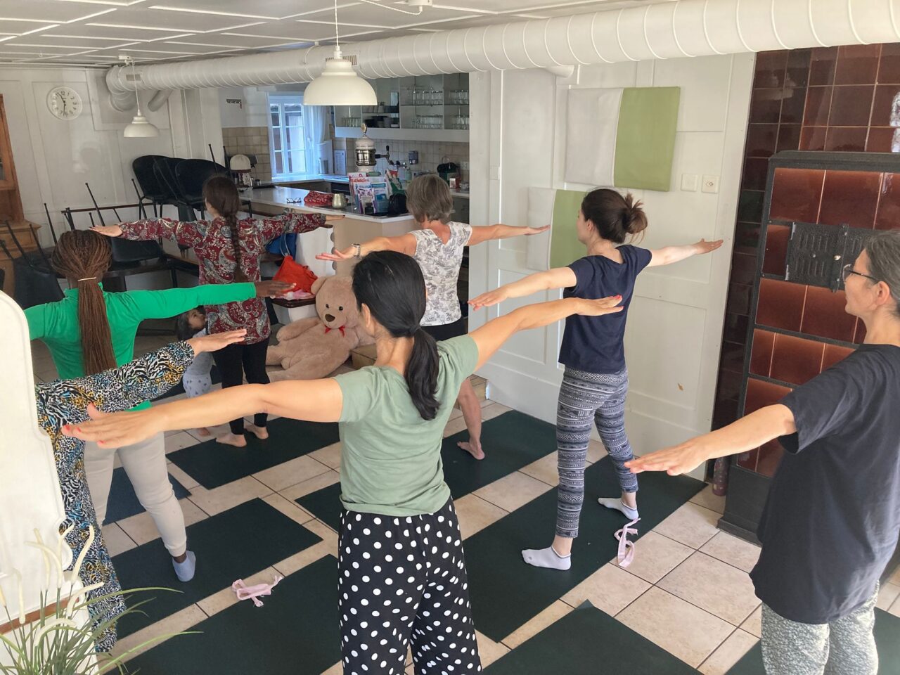 Tanz, Yoga, Gymnastik, Qi Gong etc. mit Kinderbetreuung. - 11:30 – 14:00 Uhr: Kochen und Essen