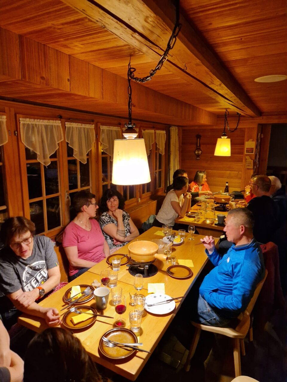 «Beim abendlichen Kennenlernen wurde bald klar, wir sind eine gutgelaunte, harmonische Gruppe mit grosser Vorfreude auf die kommenden Tage im Schnee, die unter dem Motto «…diese Berge,…diese Seen, …dieses Licht!» standen.