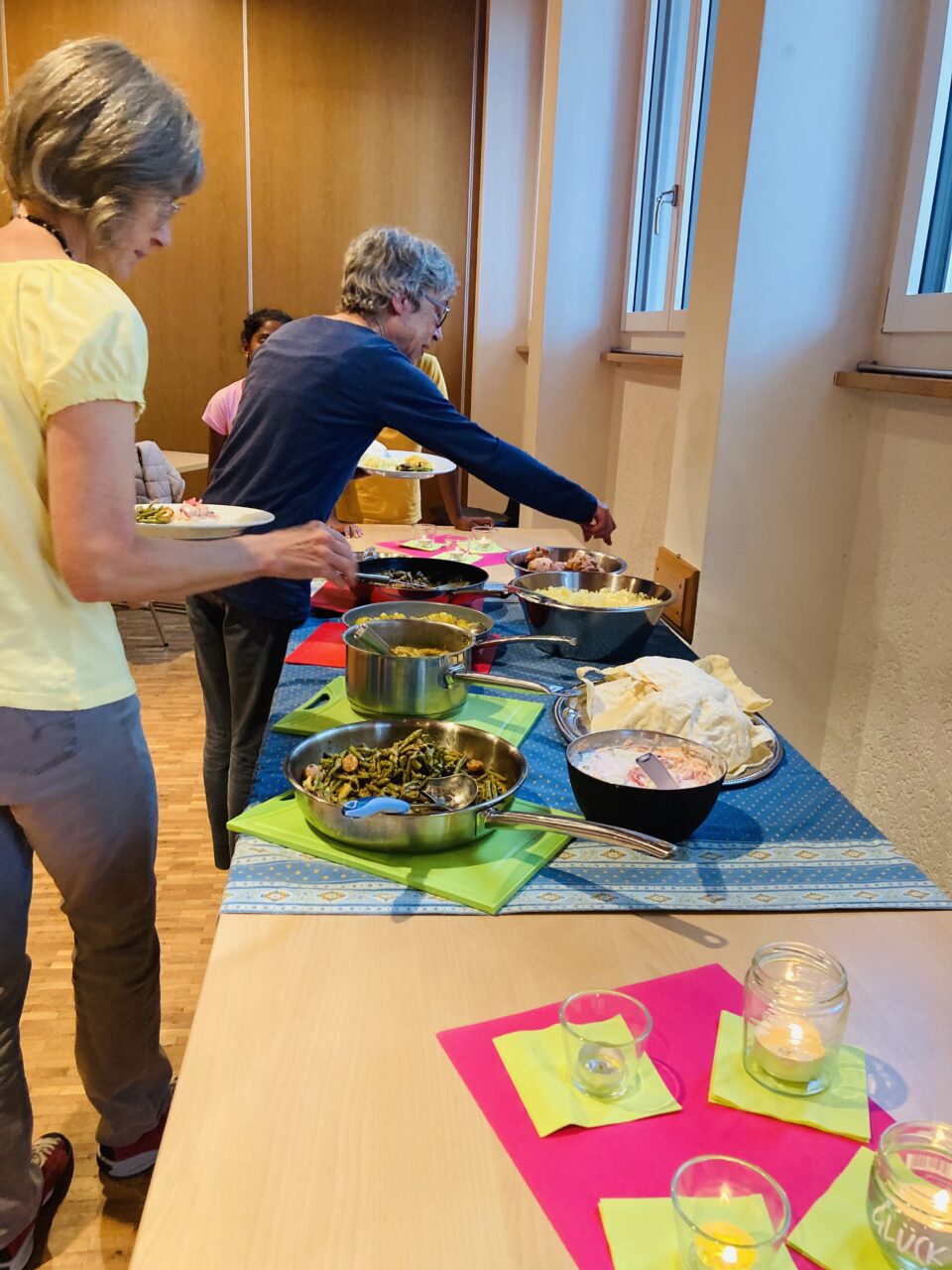 Beim Austauschabend unseres Tandemprojekts «zäme da» kamen fünf Freiwillige zusammen. In einer offenen und anregenden Runde erzählten sie, wo ihre Tandems bereichernd laufen und wo es manchmal auch herausfordernd sein kann. Für ein wunderbares Abendessen sorgte Senthusha: mit scharfem Pouletcurry, feinem Kartoffelcurry, frischem Gemüse, Salat, Linsendaal und Wadis – ein Fest für alle Sinne!